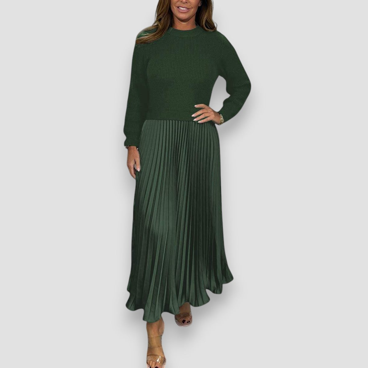 Cerchi un look elegante ma comodo? La Set Elegante Livia è la soluzione perfetta per te! La gonna plissettata dona un tocco raffinato, mentre il maglione morbido è incluso GRATIS nel set! Il maglione è super comodo e si abbina perfettamente con la gonna, per un outfit completo e sofisticato senza costi aggiuntivi. Che tu stia uscendo o rilassandoti a casa, questa set ti farà sentire al meglio in ogni momento.